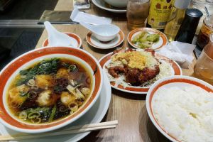 今回ご紹介するのは定番の広州雲呑麺ではなく、「油淋鶏わんたん定食」。油淋鶏に加えワンタンスープが付いてくる超お得でリースなブルなセット。