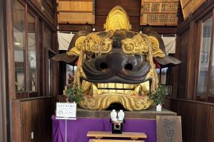 鳥居をくぐると巨大な獅子頭が左右に祀られており、その迫力ある大きさに思わず驚かれると思います。