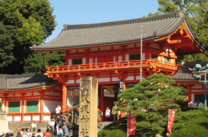 京都のメインストリートである四条通の東の付きあたりにあります。(西のつきあたりは松尾大社)